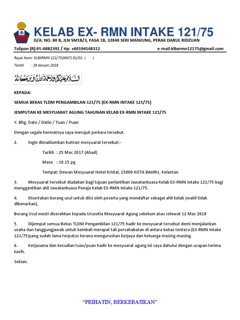 Download Full PDF Package. Surat jemputan mesyuarat agung tahunan. PN NURHAIZA BINTI CHE MAT 2.