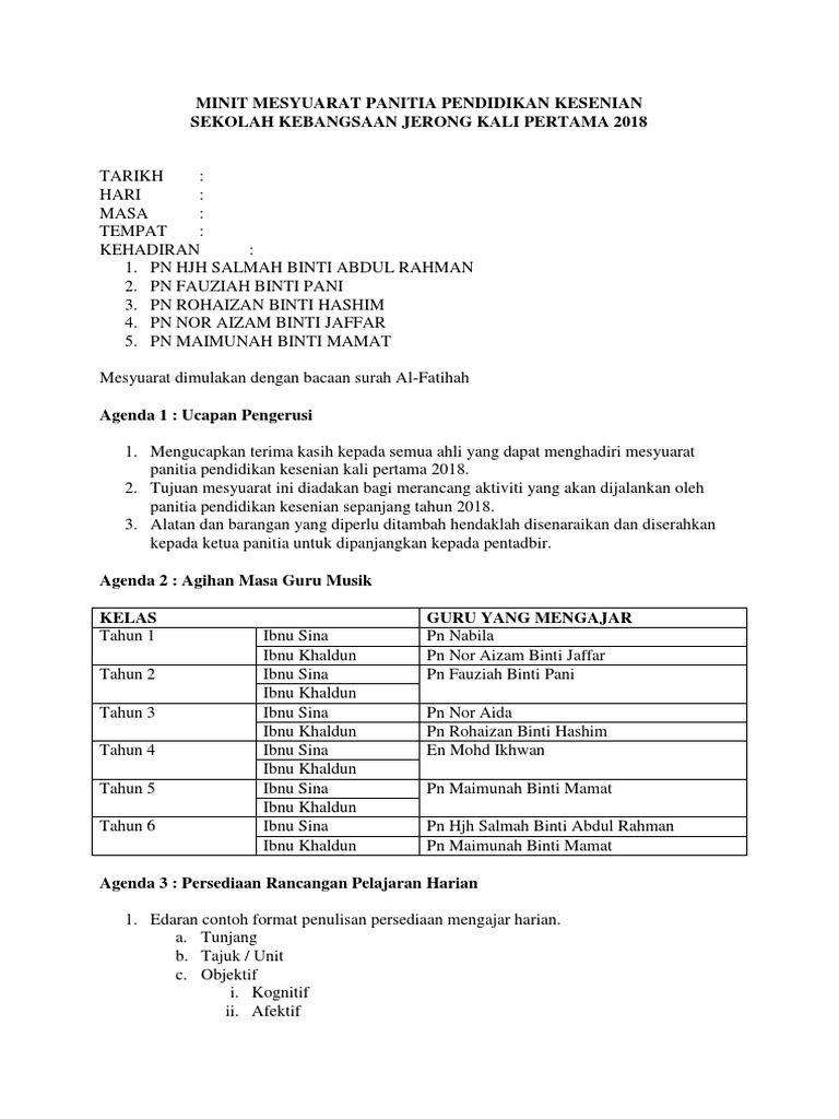 Minit Mesyuarat Panitia Pendidikan Kesenian Pdf