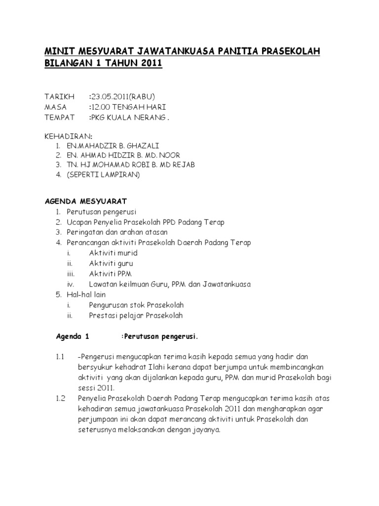 Minit Mesyuarat Panitia Prasekolah Kali Daerah Padang Terap Kali Ke Pdf