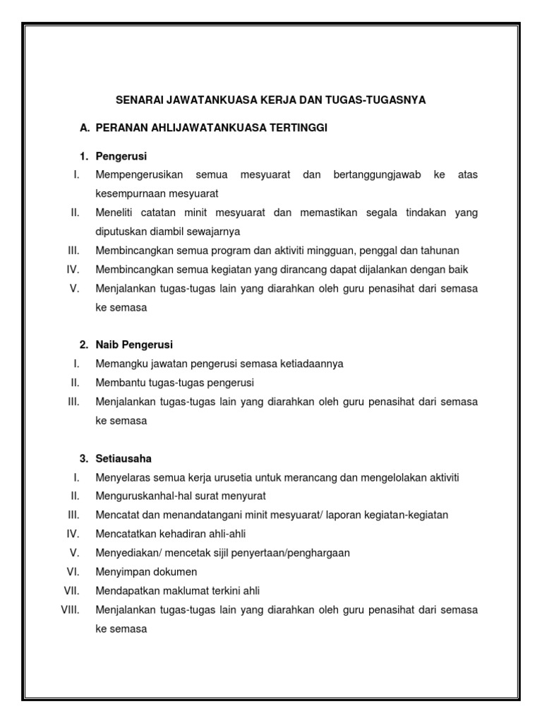 Senarai Jawatankuasa Kerja Dan Tugas Pdf