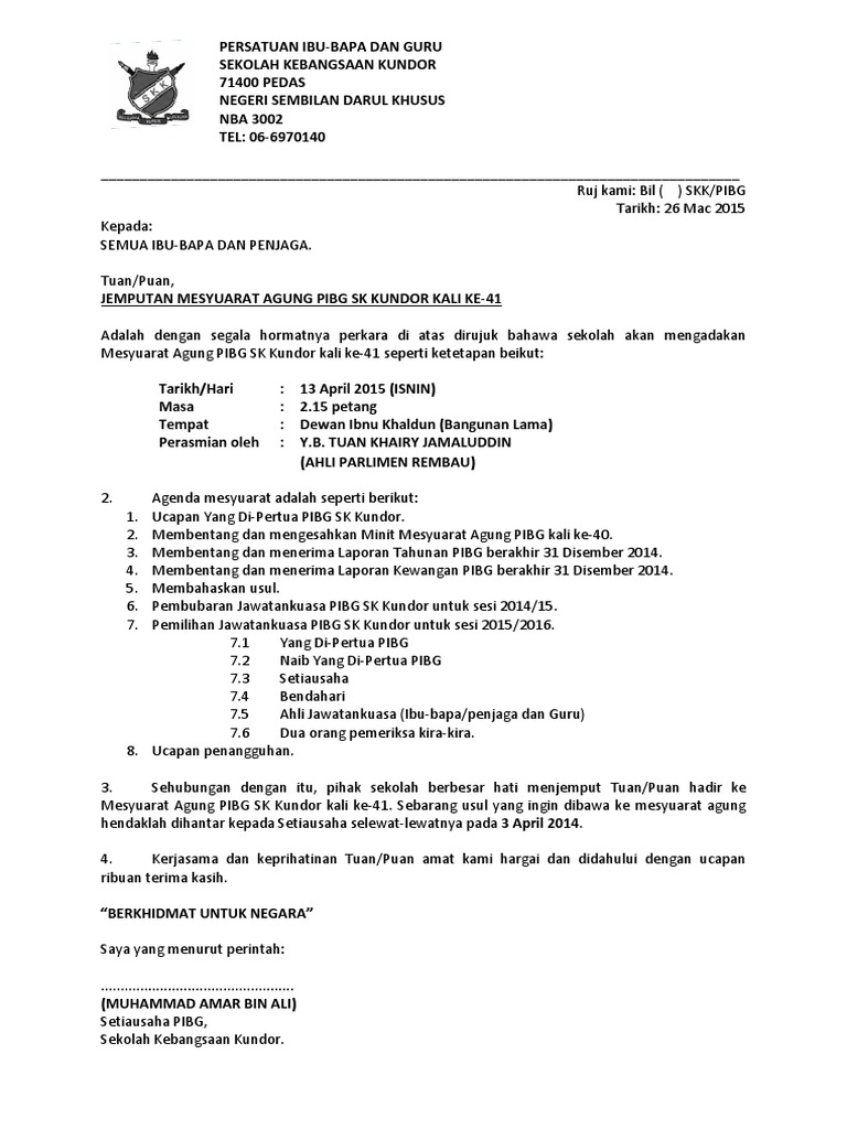 Surat jemputan mesyuarat agung pibg. PIBGSMKRPB1002 44 Tarikh. Kepada yb dato datin tuan puan jemputan ke mesyuarat agung pibg smk telok air tawar kali ke 26 dengan segala hormatnya perkara di atas adalah dirujuk 2. 15 Gambar Contoh Surat Notis Mesyuarat Agung yang Baik dan Benar 2019.