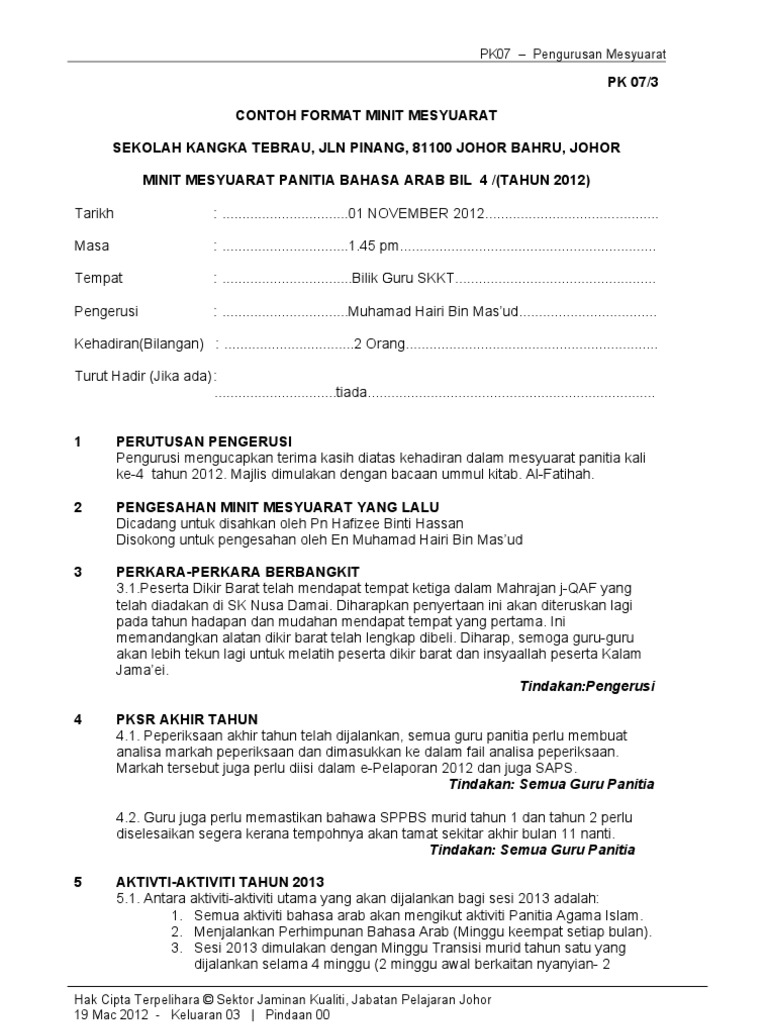 Contoh Format Minit Mesyuarat Pendidikan Islam Pdf