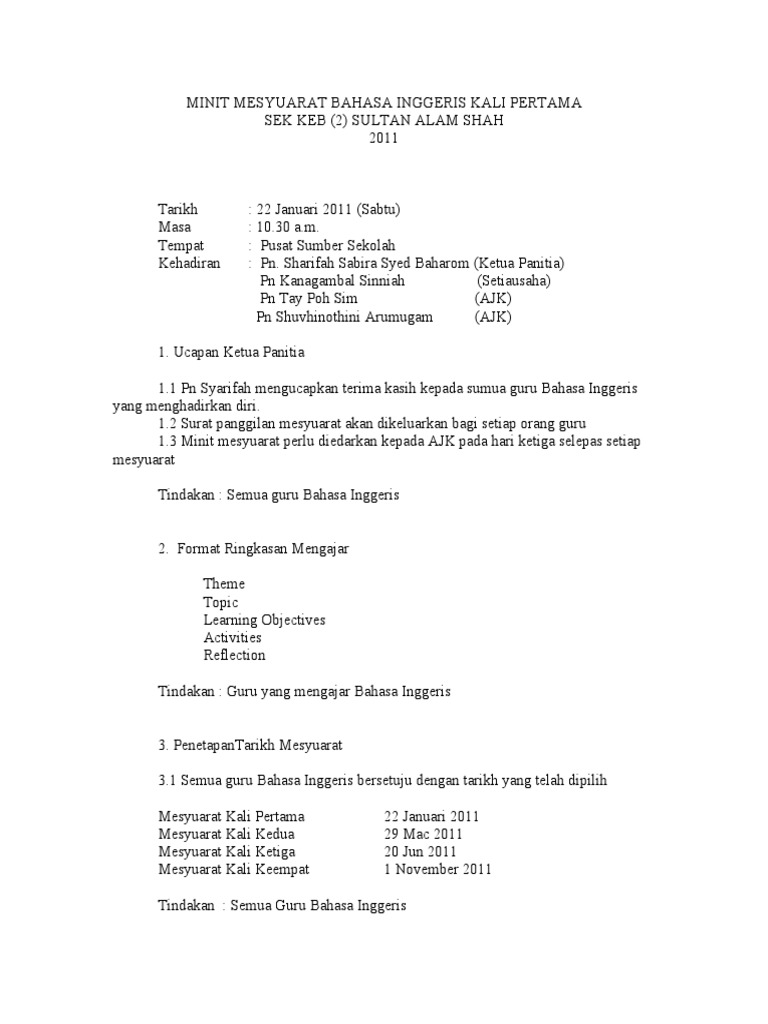 Minit Mesyuarat Bahasa Inggeris Kali Pertama Pdf