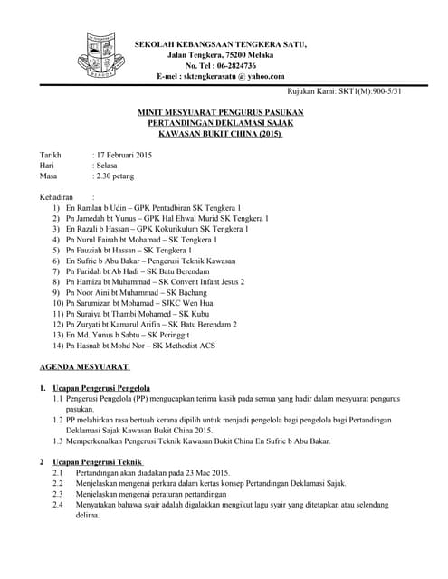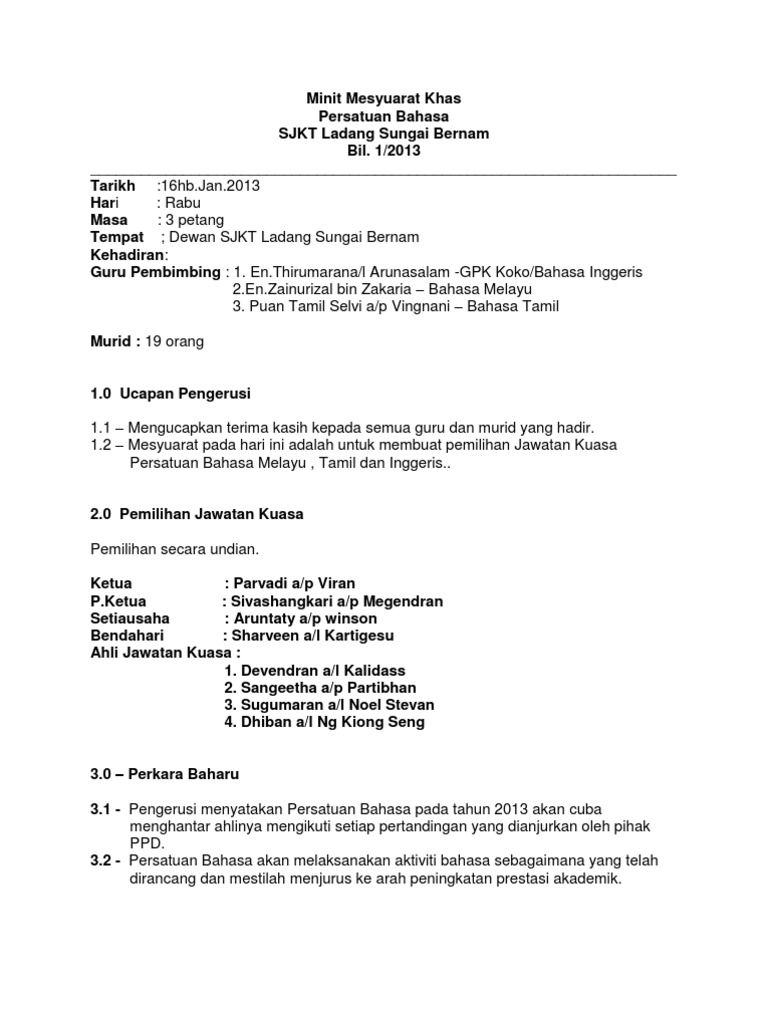 Pengerusi 11 Pengerusi mengucapkan terima kasih kepada Tn Hj Othman B Hashim dan semua guru-guru kerana hadir ke mesyuarat pertandingan reka cipta menggunakan penyedut minuman untuk matapelajaran Kemahiran Hidup. View flipping ebook version of MINIT MESYUARAT KALI PERTAMA 2021 published by Rozana Mohamad Ali on 2021-03-21. Surat panggilan mesyuarat kurikulum bil 2 2015.