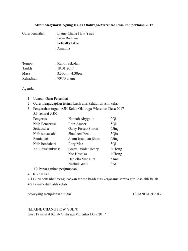 Minit Mesyuarat Agung Kelab Olahraga Kali Pertama 2017 Pdf