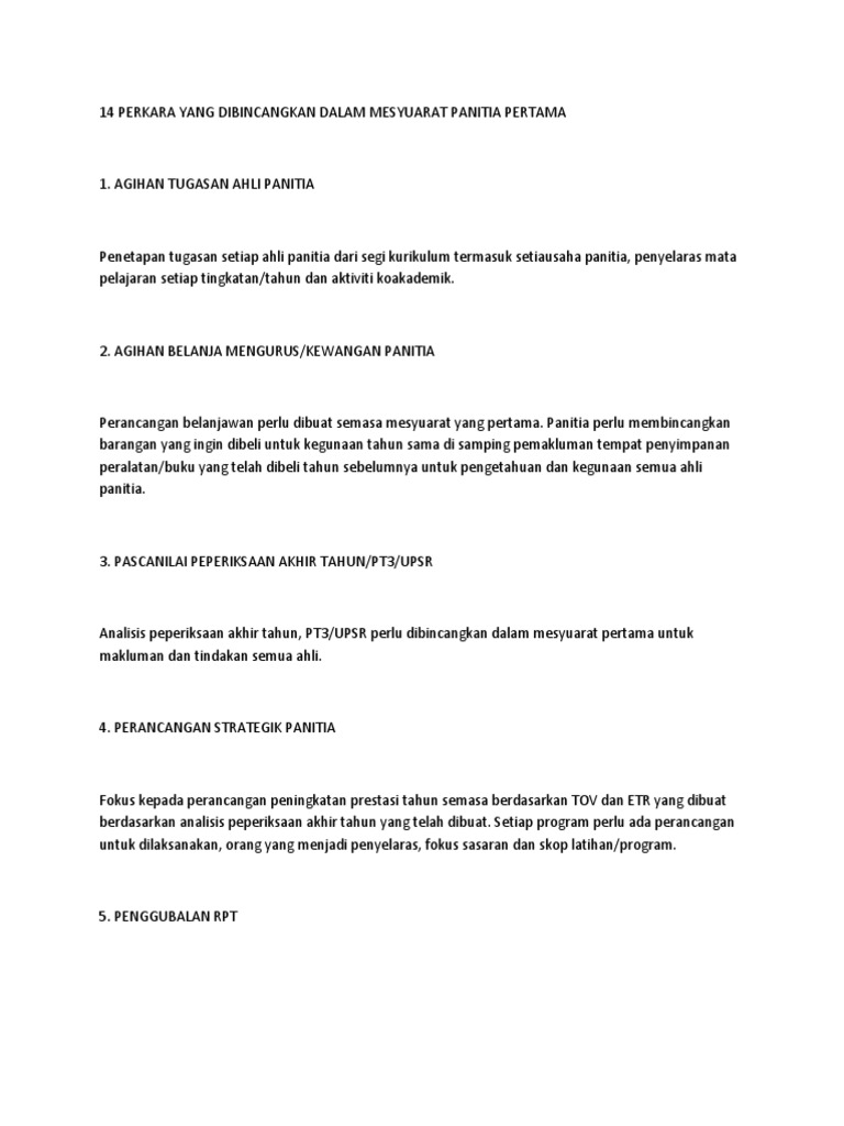 14 Perkara Yang Dibincangkan Dalam Mesyuarat Panitia Pertama Pdf