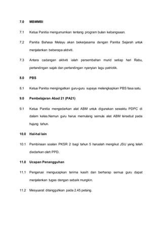 En Mat Som Sadono 2. Bilik Persatuan Bahasa Melayu Kehadiran. Minit mesyuarat panitia sejarah 2 2013 Maskor Emas Tulen.